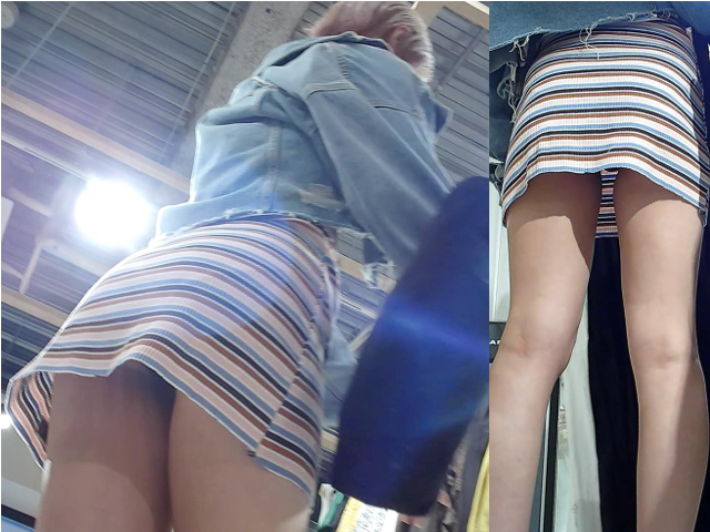 ボーダー柄うすうすニット激ミニワンピのギャル。