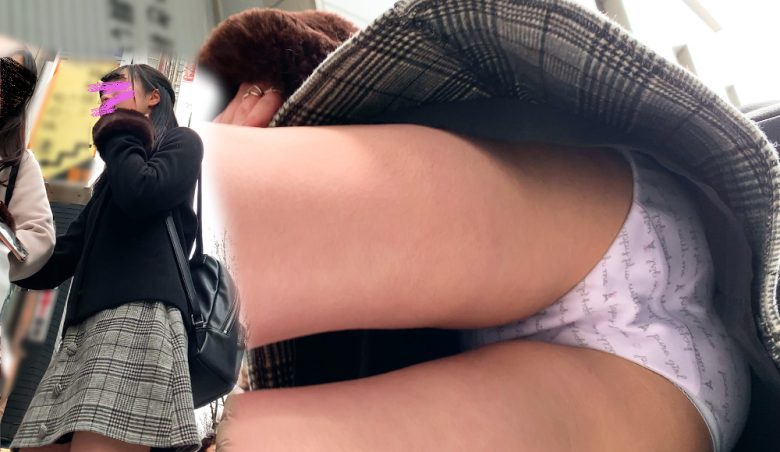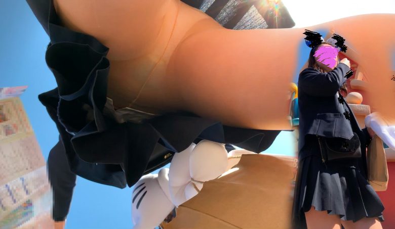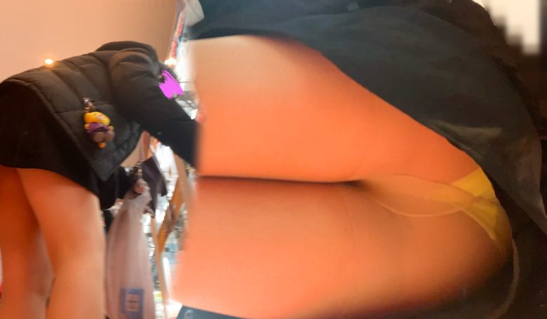 追い撮りで短いスカートの中をしつこく撮影していきます。